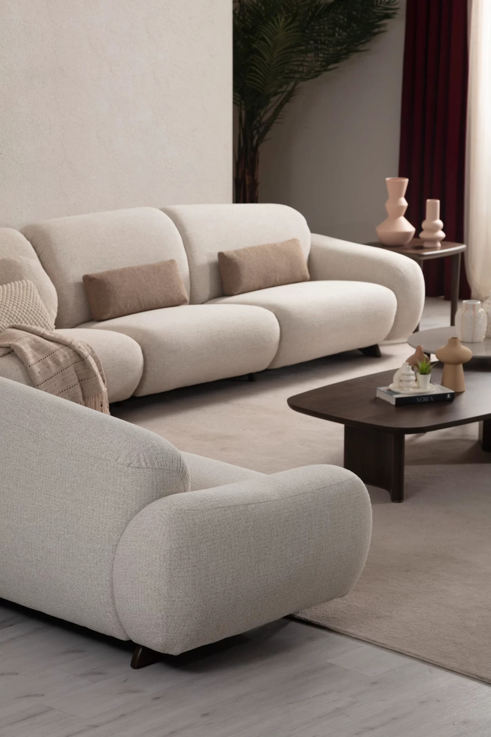 The Lina Sofa combines a soft, inviting texture with a clean modern design, bringing warmth and understated elegance to your living space. Its spacious seating area and ergonomic structure prioritize comfort, making it ideal for both everyday relaxation and hosting guests.